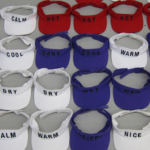 Visor Calendar, 2012. Visor, iron-on lettering, 7 ¼ x 6 x 1 ½ in. (approx.) From a series of 30 visors, each with a word that describes the weather for every day of June 2011. Based on SP Weather Station data, the descriptive words also highlight parallels between personality traits and the weather. michellerosenberg.com … [Read more...]